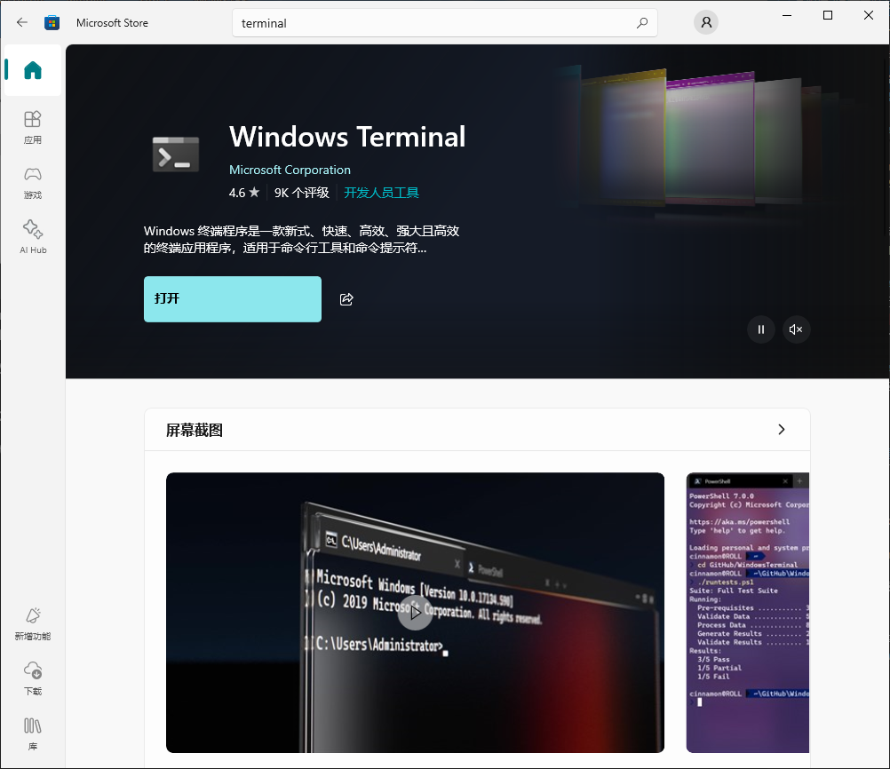 本文假设我们的网站项目为 test 。在你要建站的位置,打开命令行。我推荐下载Windows商店里的Windows Terminal。画面比PowerShell和cmd好看多了。
