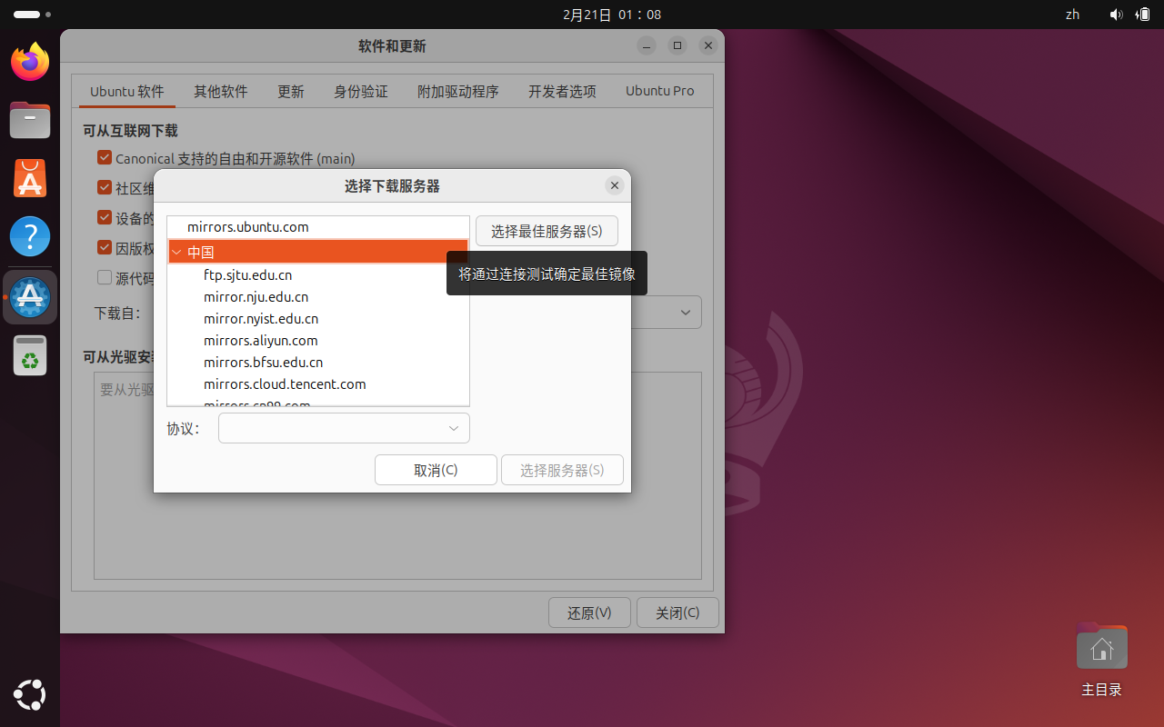 连接网线,根据此步骤切换最快软件源
