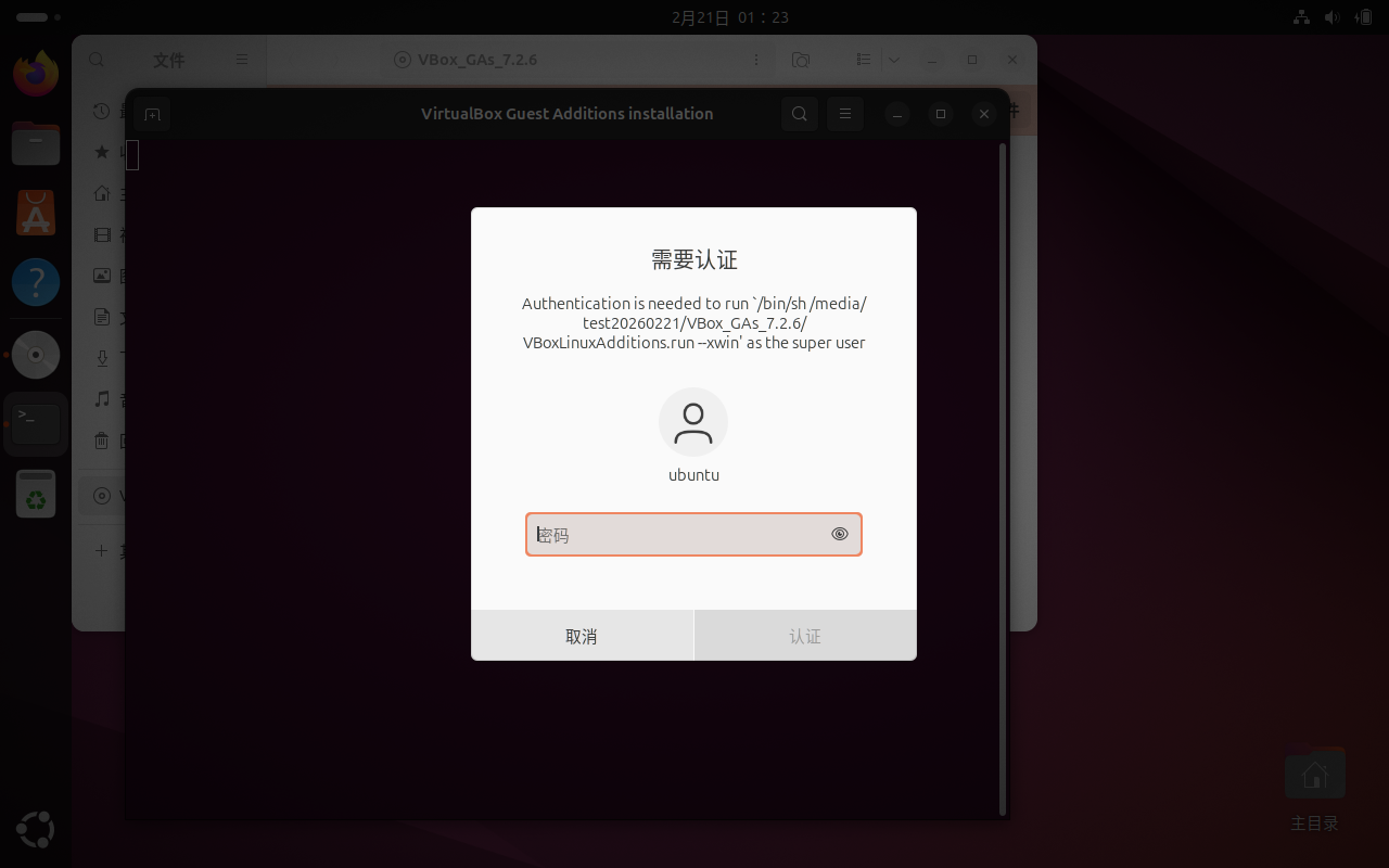就像前面Windows一样,点击“安装增强功能”插入虚拟光盘。
