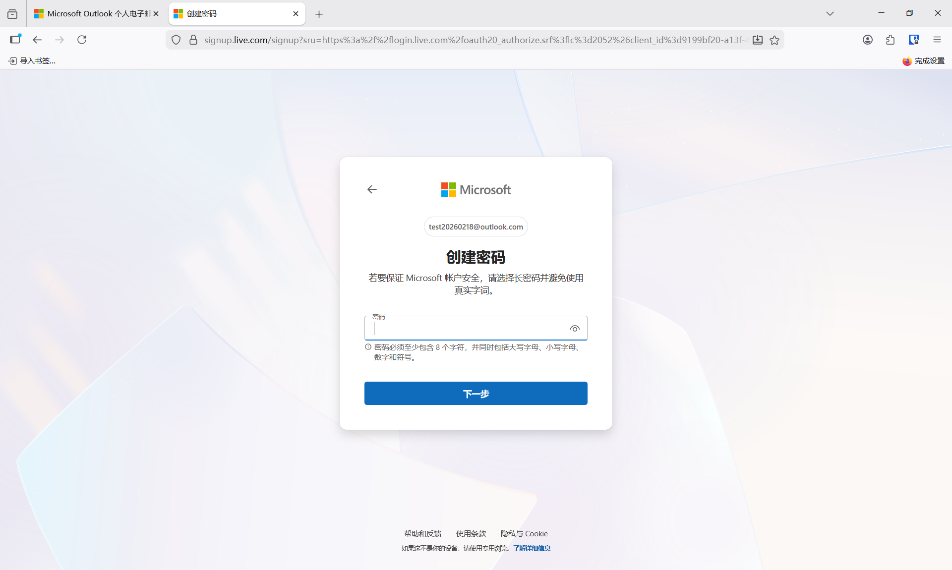 设定密码。如果你以后想用这个邮箱来作为你的密码管理器注册邮箱,那么你的密码一定要长,并且包含大小写字母、数字、特殊符号,还要由你自己背下来,终身记住,而不是交给密码管理器。当然,你之后再设双因素认证(2FA)也是可以的。