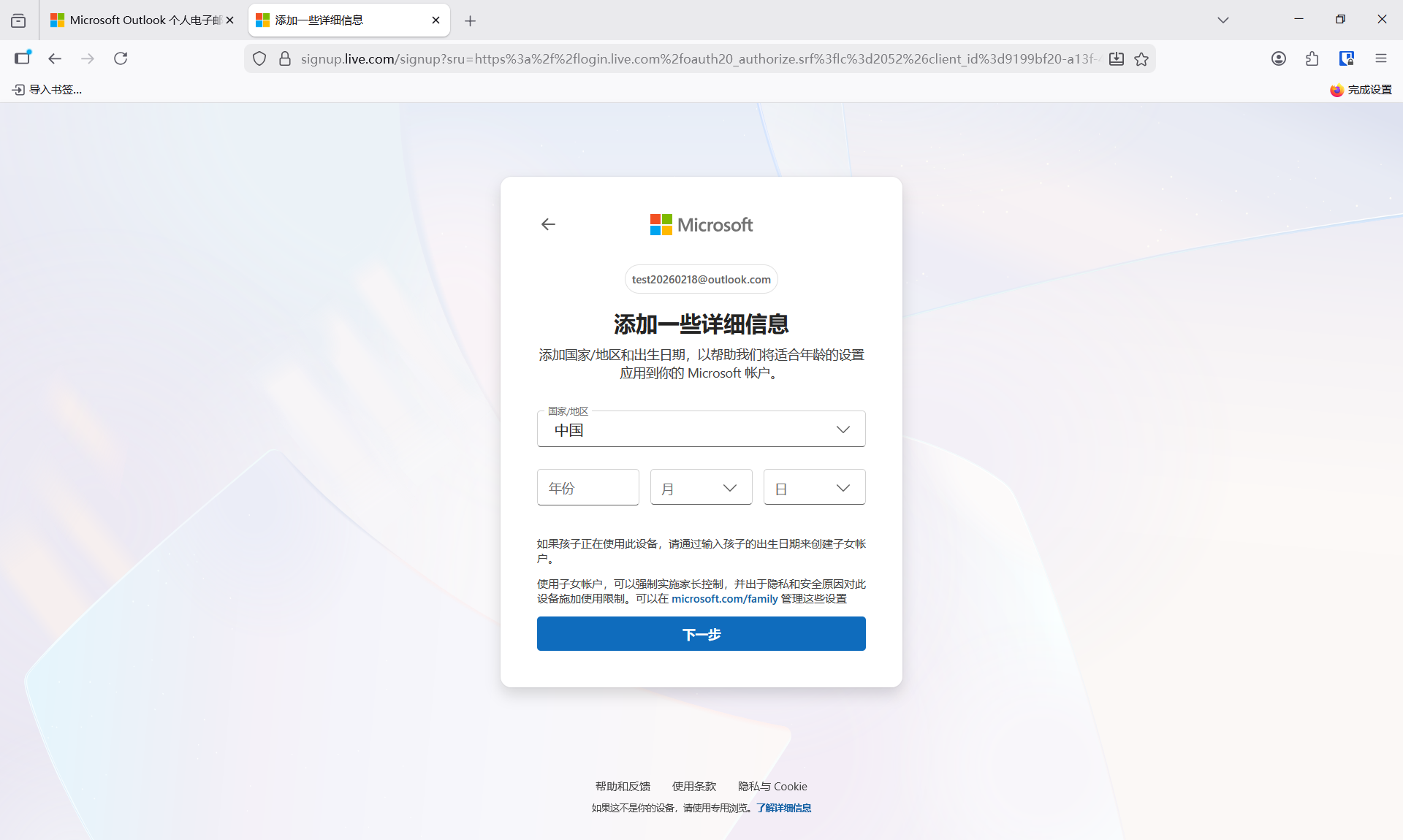 单击登录按钮下的>创建免费帐户,跳转到如下界面