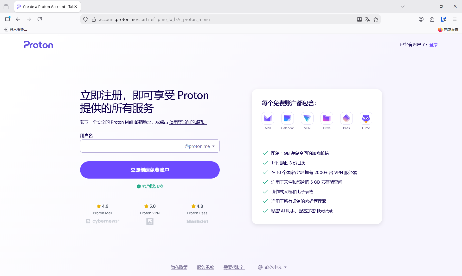 注册protonmail