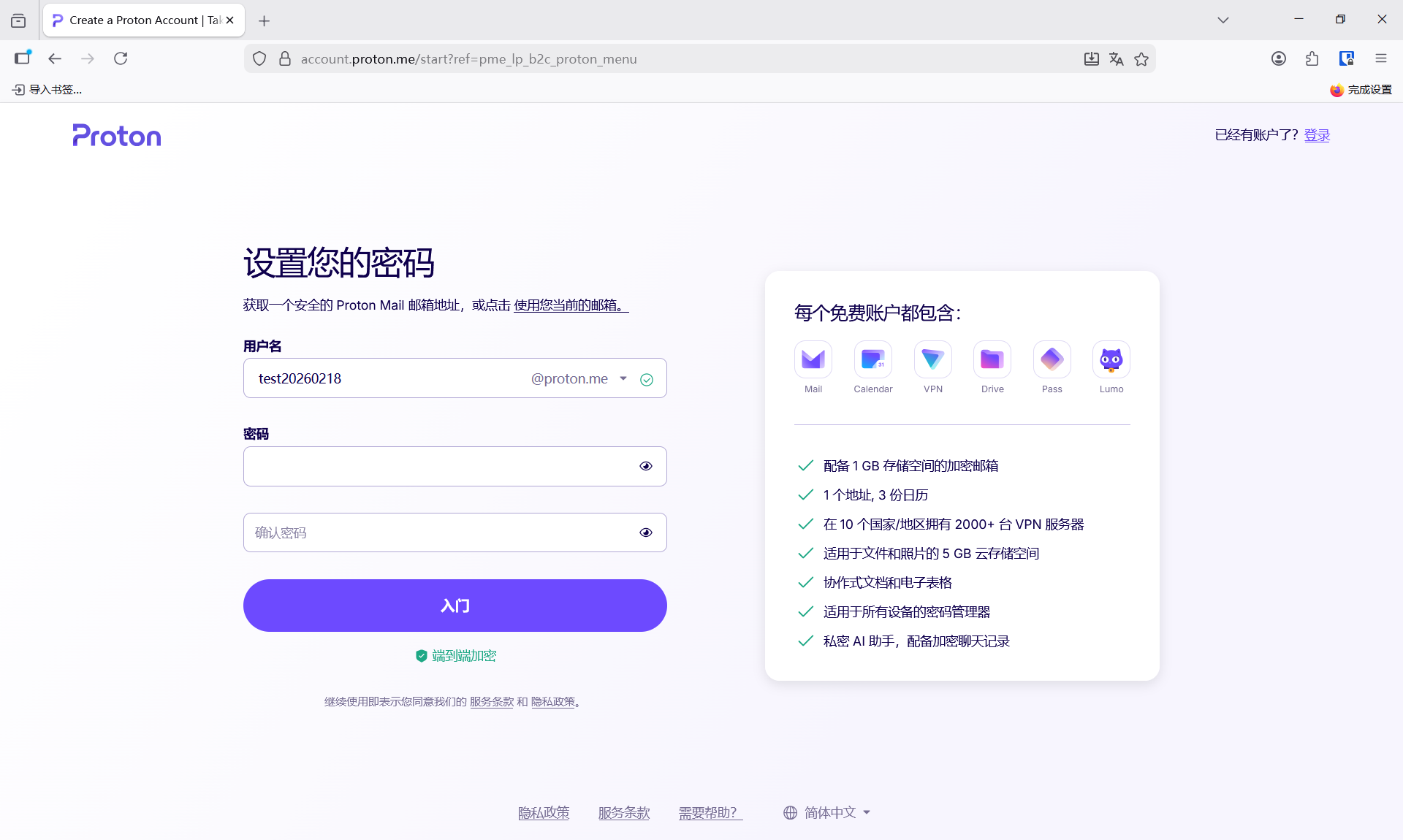 输入proton.me