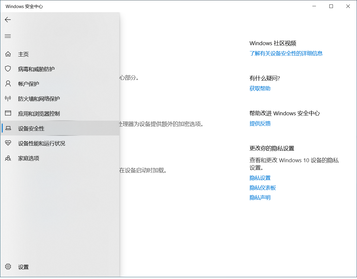 进入Windows安全中心,打开设备安全性