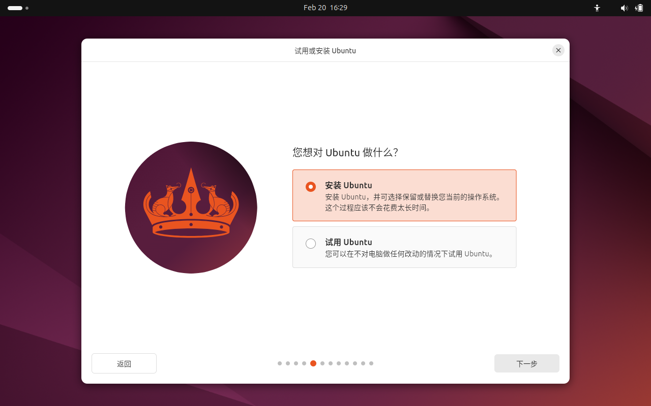 选择第一个,试用或安装Ubuntu