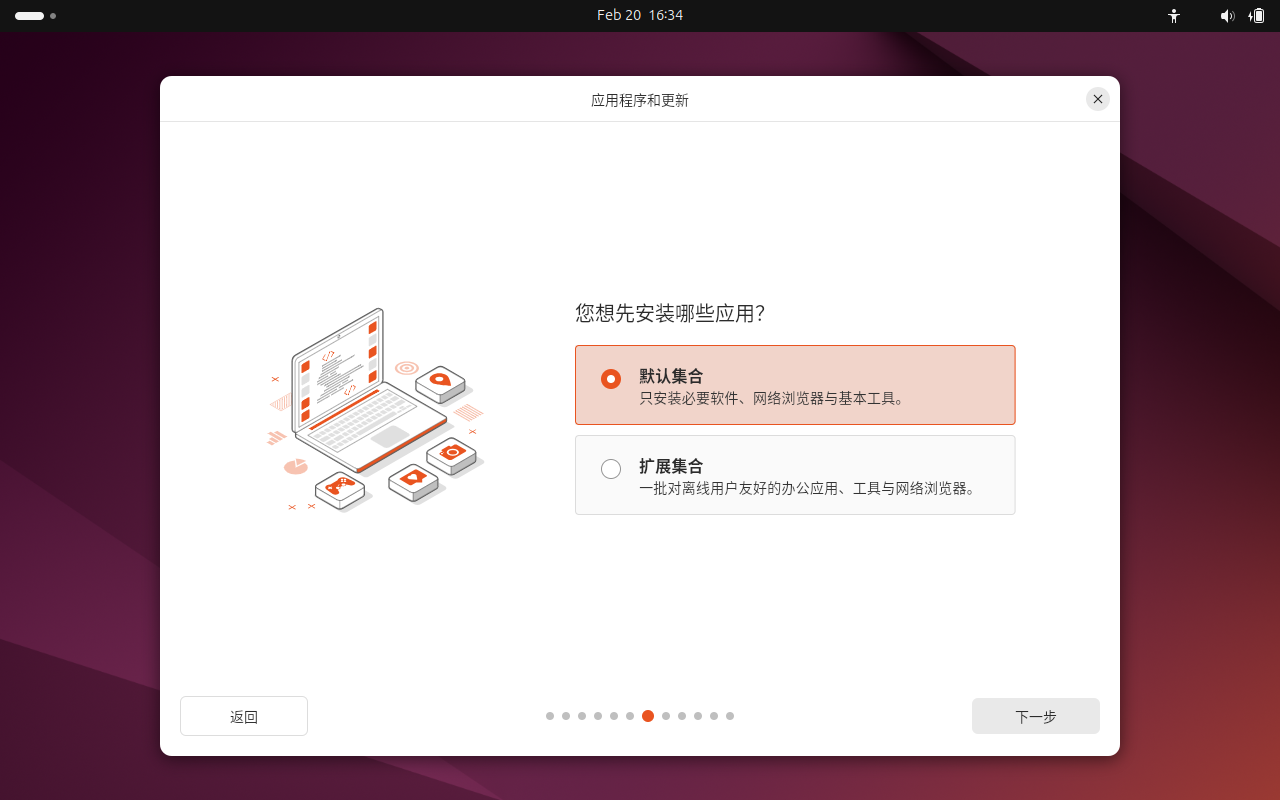 之前选了中文,这里就是汉语,一般来说不用换。如果之前选了英文,可以选择检测键盘布局