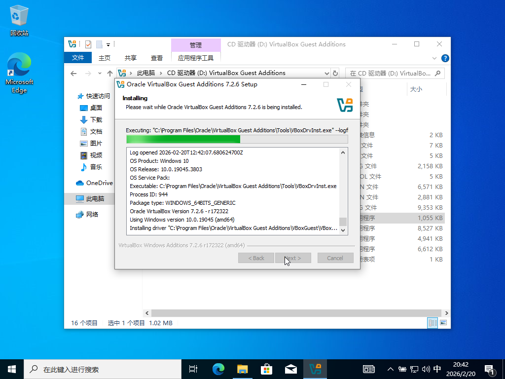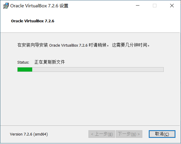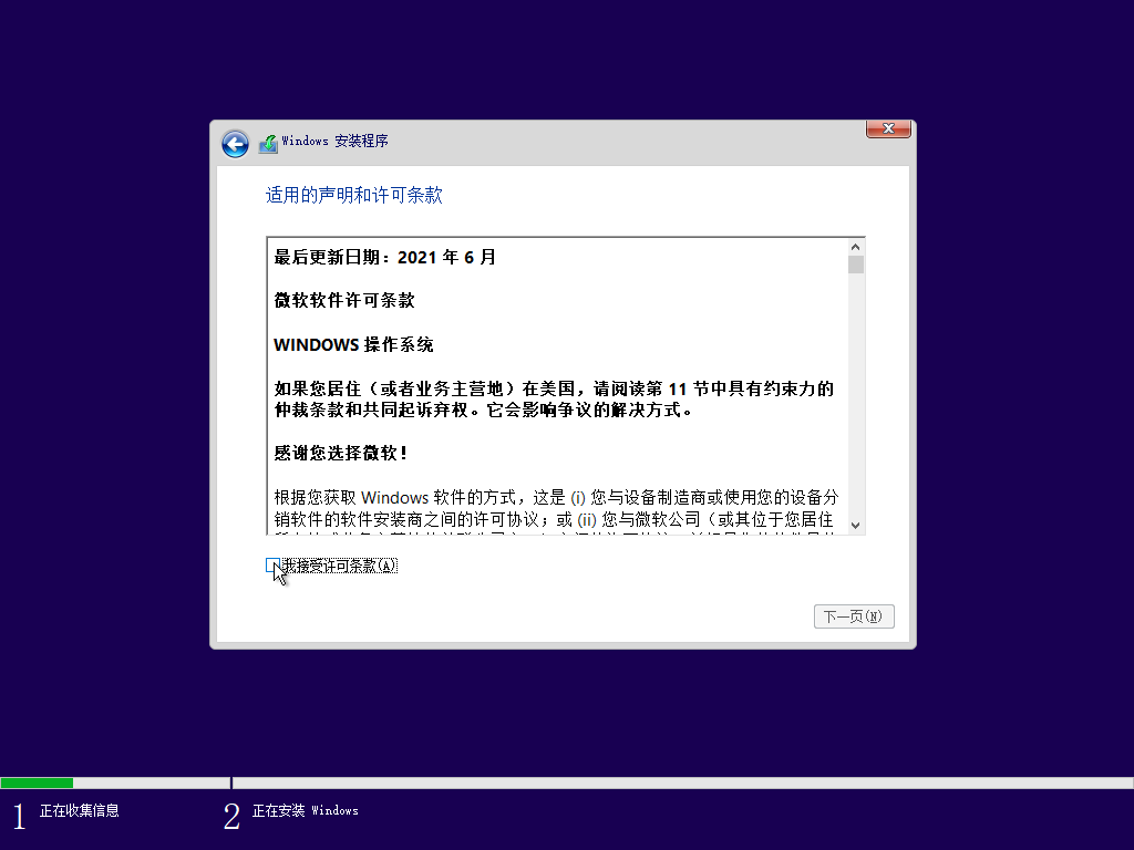 其余步骤,在虚拟机上和真实电脑上基本上没有任何差别,在这里到下一步操作,需要等很长时间。