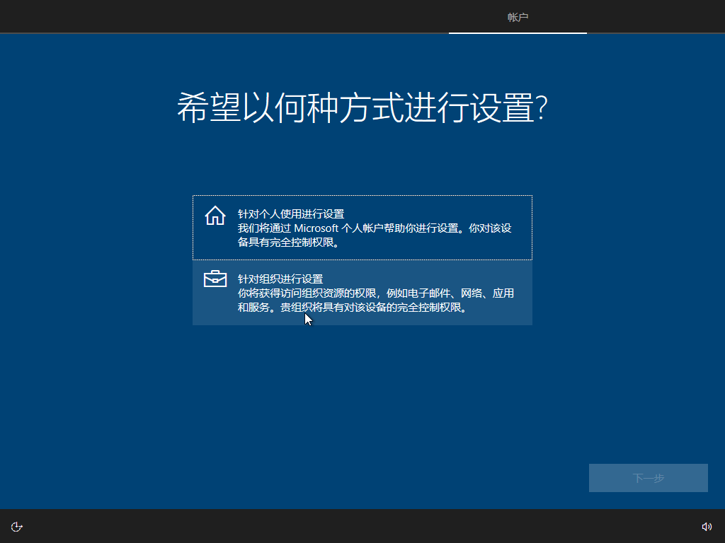 有读者就要问了:我不属于任何组织为啥要选这个啊?这是因为你选了“针对个人”,它会强制你登录你的微软账号。这对你的隐私是重大打击。最好安装Windows之前,就拔掉网线,不要登录任何WiFi。