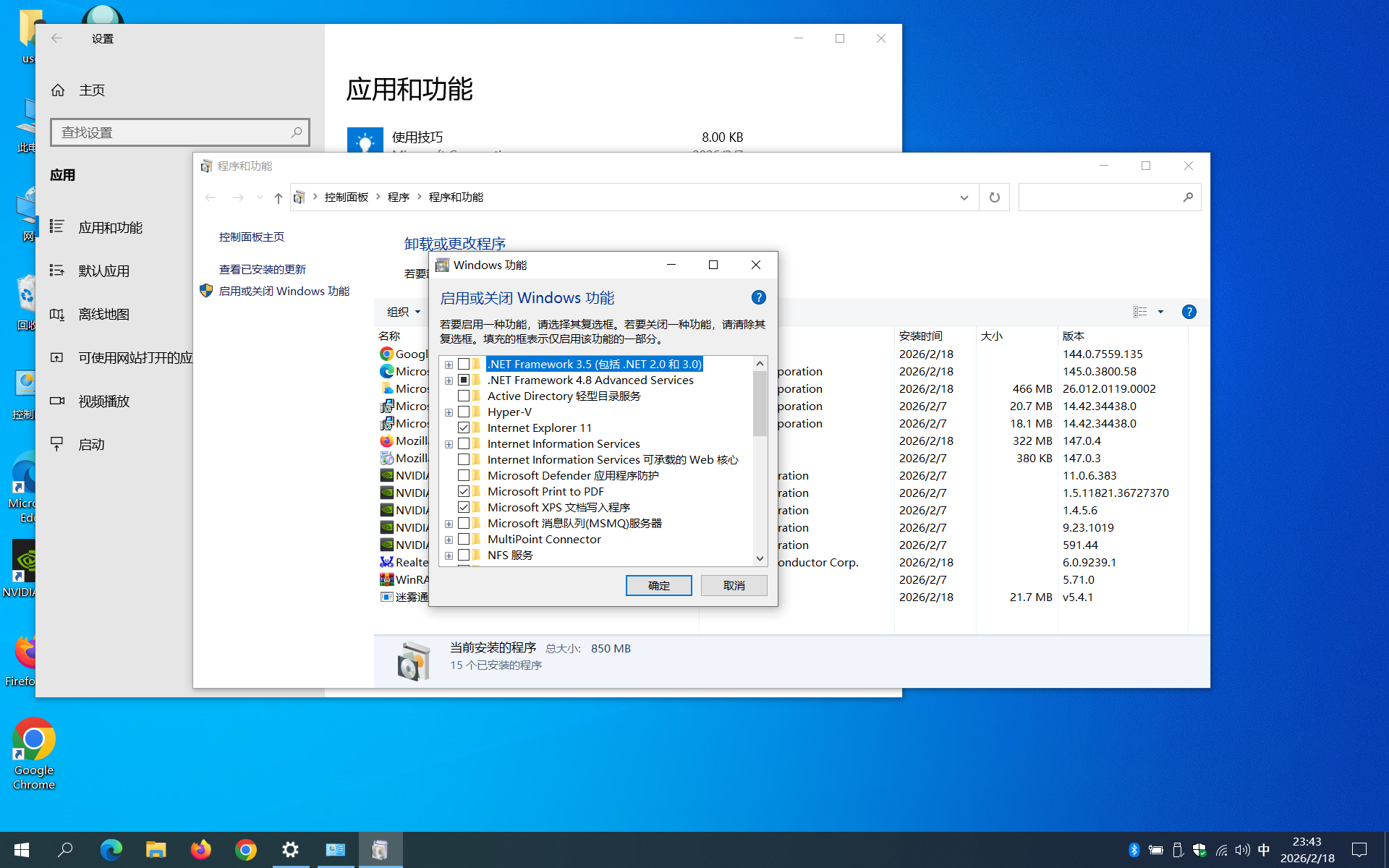 点击启用和关闭Windows功能